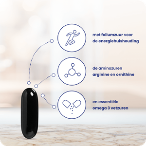 Arginine en ornithineTijdens sporten komen afvalstoffen vrij (zoals melkzuur en ammoniak), die door de lever moeten worden verwerkt. De reinigende functie van de lever wordt ondersteund door het aminozuur arginine. Zo vertraagt de verzuring van uw spieren en daardoor herstelt u sneller na een training. Samen met ornithine draagt het bovendien bij aan de ontwikkeling van de spieren. Foliumzuur en lysine