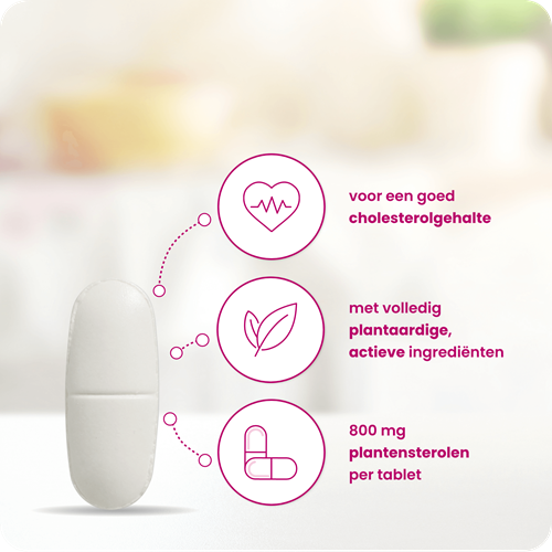 Plantensterolen zitten bijvoorbeeld in granen, soja, plantaardige olie, zaden en noten. Dagelijks minimaal 800 mg plantensterolen helpt het cholesterol op een goed peil te houden.